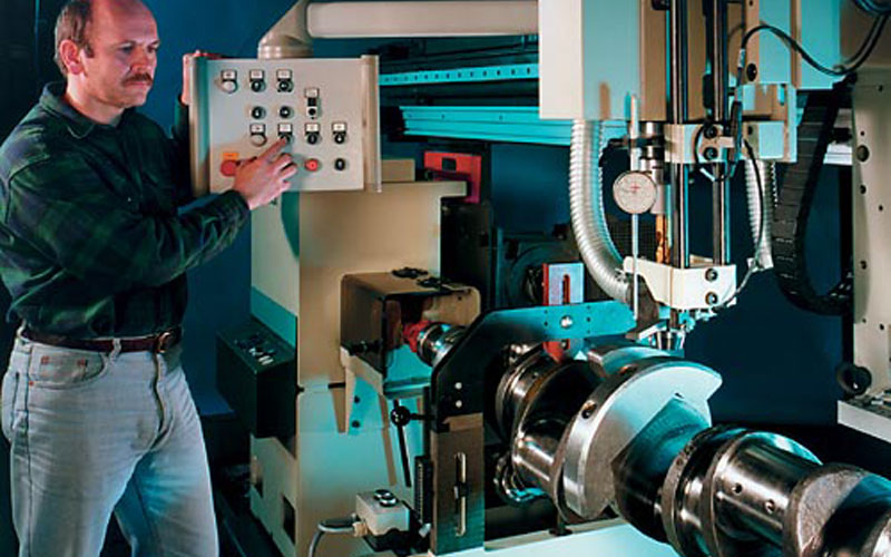 Hard-bearing special balancing machine with horizontal rotor axis and semi-automatic operation.